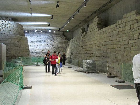< ルーヴル美術館の地下出口 過去のルーヴル宮殿の石垣 >